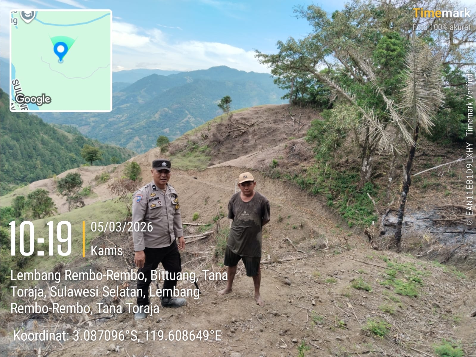 MAMASA–Bhabinkamtibmas Polsek Pana melaksanakan kegiatan monitoring pembukaan lahan jagung milik warga yang tergabung dalam kelompok tani di Desa Manipi, Kecamatan Pana, Kabupaten Mamasa, Kamis, 05 maret 2026
