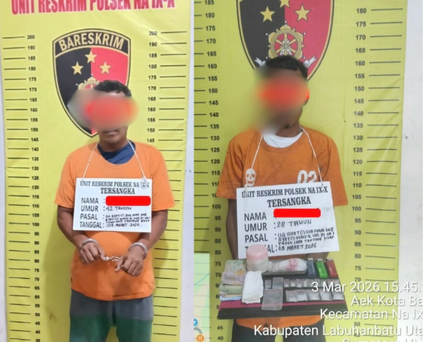 LABURA, Bataskota.id – Polisi meringkus dua orang pria yang terlibat narkoba di Dusun Hutapadang, Desa Batu Tunggal, Kecamatan Na IX-X, Kabupaten Labuhanbatu Utara (Labura). Keduanya ditangkap pada, Selasa (03/03) sekitar pukul 12.30 WIB usai dilaporkan masyarakat.