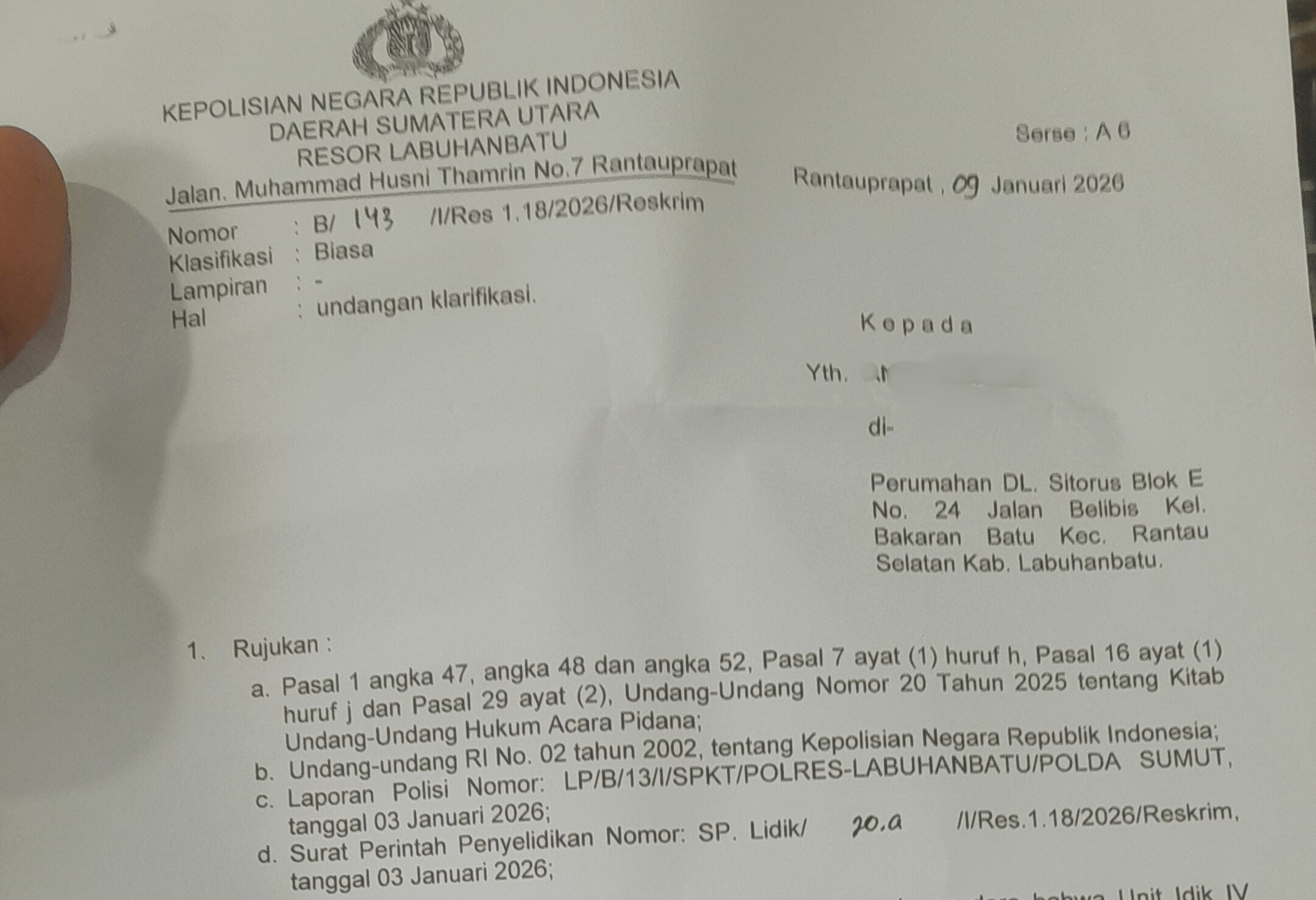 Diketahui, Polres Labuhanbatu sebelumnya telah menerima laporan polisi dalam perkara dugaan pencemaran nama baik melalui media sosial, demi kepastian hukum yang cepat kini kepolisian telah menjadwalkan penyelidikan saksi pada Rabu 14 Januari 2026. Sementara itu, terlapor pemilik akun instagram @bby_anggi juga dikabarkan dimintai keterangannya dalam beberapa hari kedepan usai pemeriksaan terhadap saksi.
