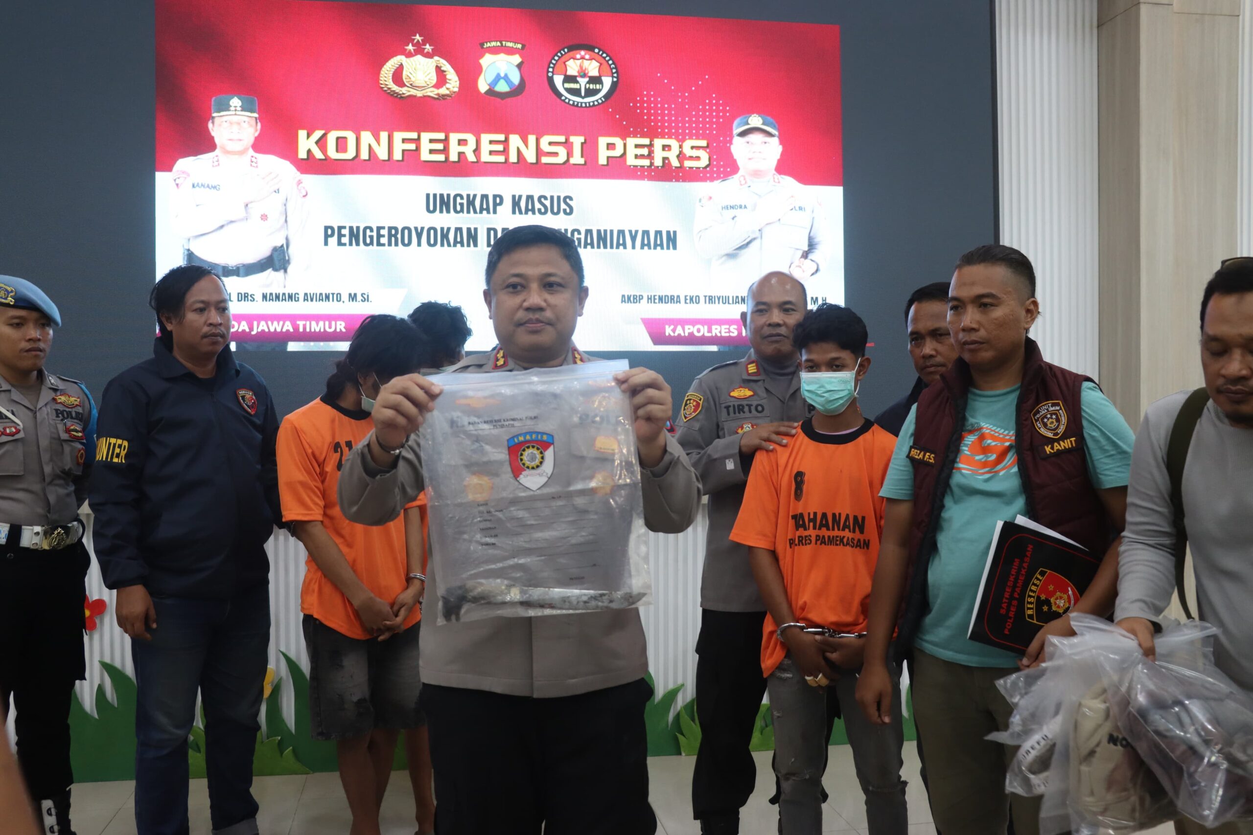PAMEKASAN – Kinerja cepat dan sigap kembali ditunjukkan oleh Jajaran Polres Pamekasan melalui Satuan Reserse Kriminal (Satreskrim) Polres Pamekasan dalam mengungkap 2 (dua) kasus yaitu kasus pengeroyokan dan kasus penganiayaan yang menyebabkan korban meninggal dunia yang mengejutkan warga Pamekasan dan sempat viral di media sosial.