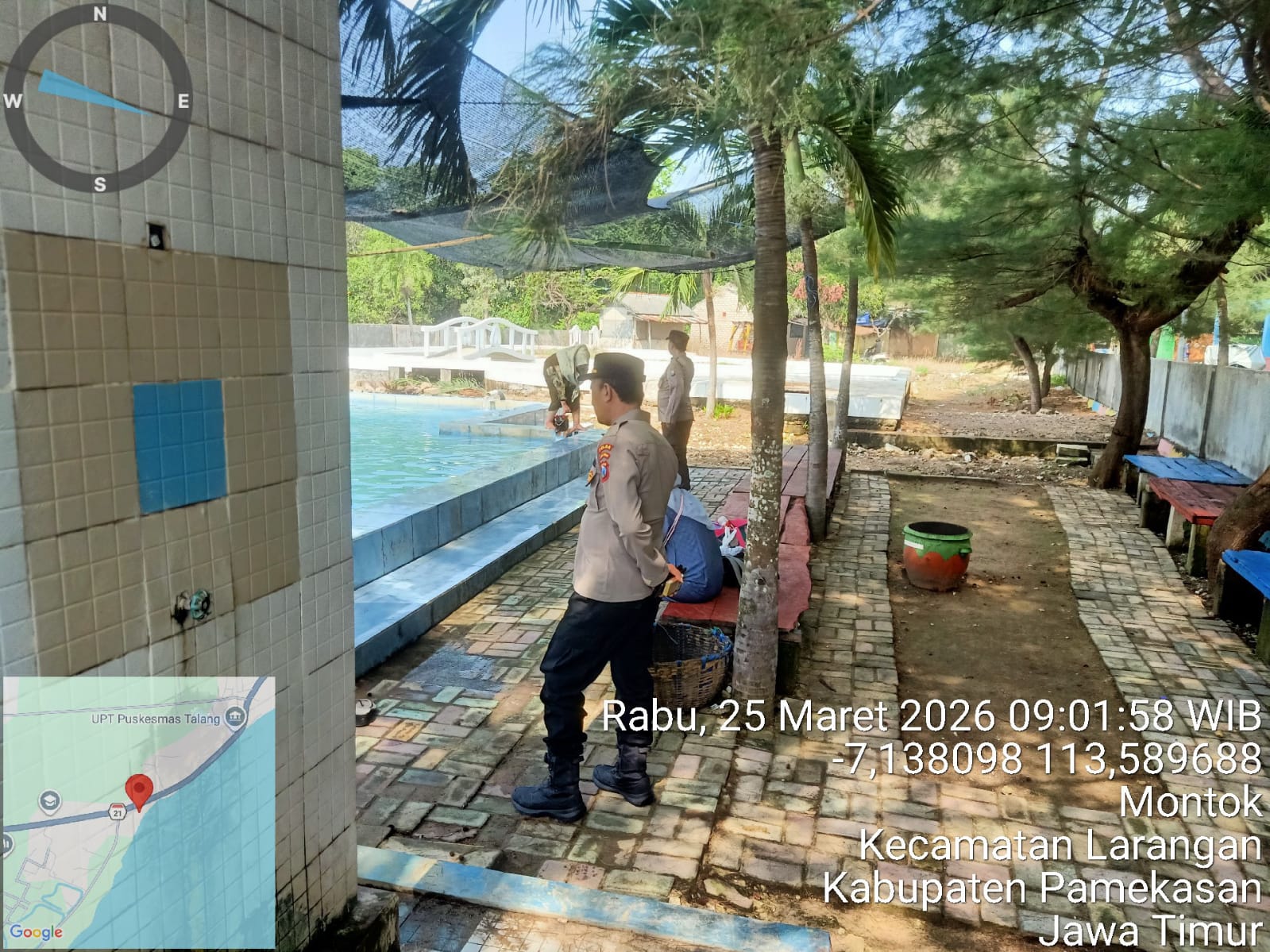 PAMEKASAN – Guna menjamin keamanan dan kenyamanan masyarakat di kawasan wisata, personel Pos Pengamanan (Pos Pam) Talang Siring melaksanakan pengecekan rutin di Objek Vital (Obvit) Wisata Pantai Talang Siring, Rabu (25/03/2026).