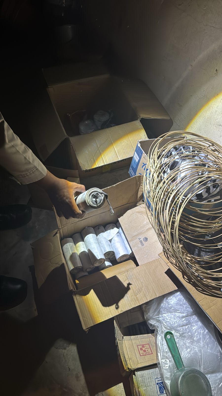 – Bahan Kimia : Total lebih dari 5 kg bubuk mesiu/petasan, belerang, serbuk arang, tepung kanji, hingga 2 kg booster kelingking.