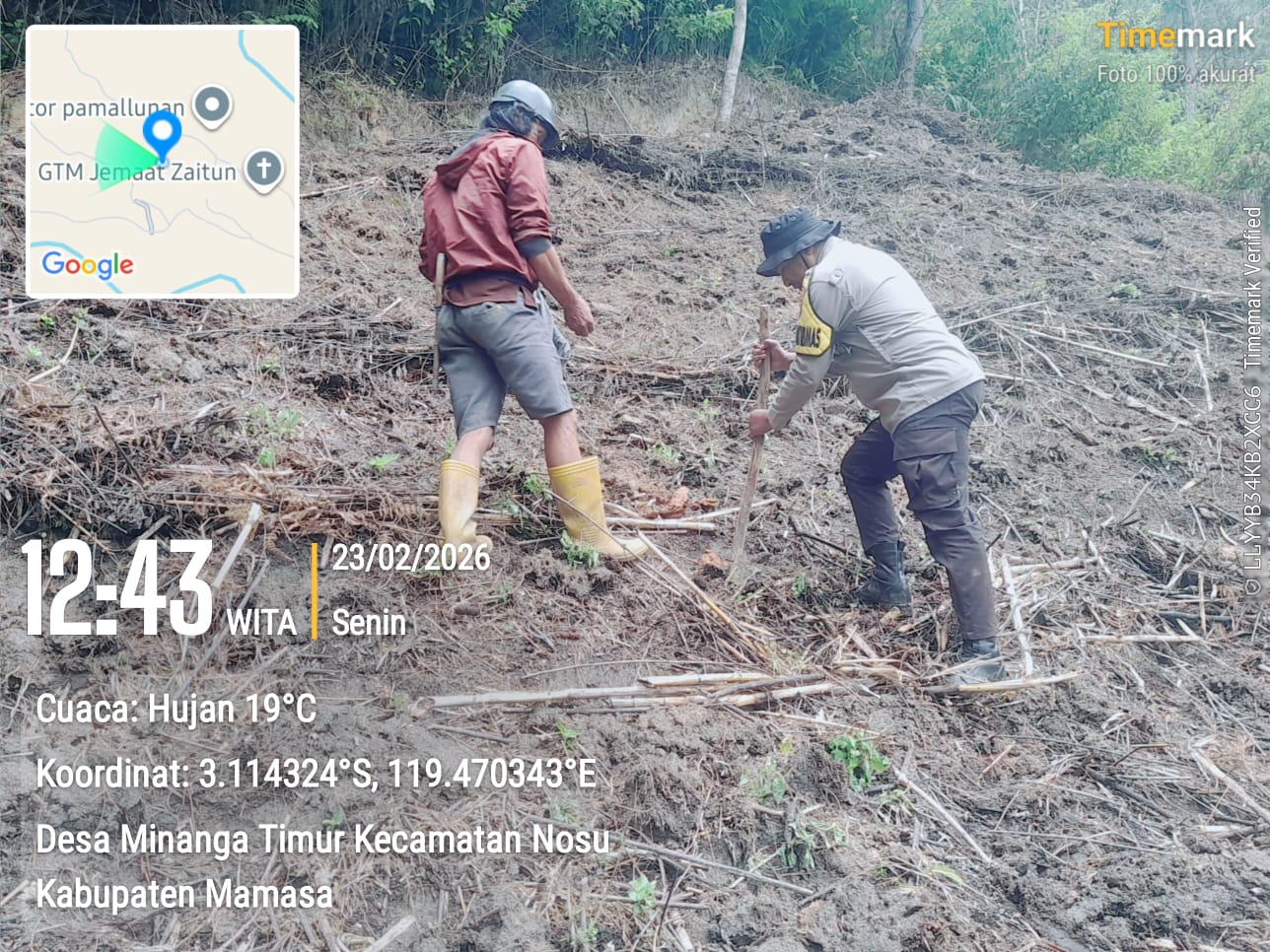 MAMASA–Sekitar pukul 12.43 WITA, telah dilaksanakan kegiatan penanaman jagung oleh warga di Dusun Turunan, Desa Minanga Timur, Kecamatan Nosu, Kabupaten Mamasa. Kegiatan ini merupakan bagian dari upaya mendukung ketahanan pangan serta meningkatkan kesejahteraan masyarakat setempat, 24 Februari 2026