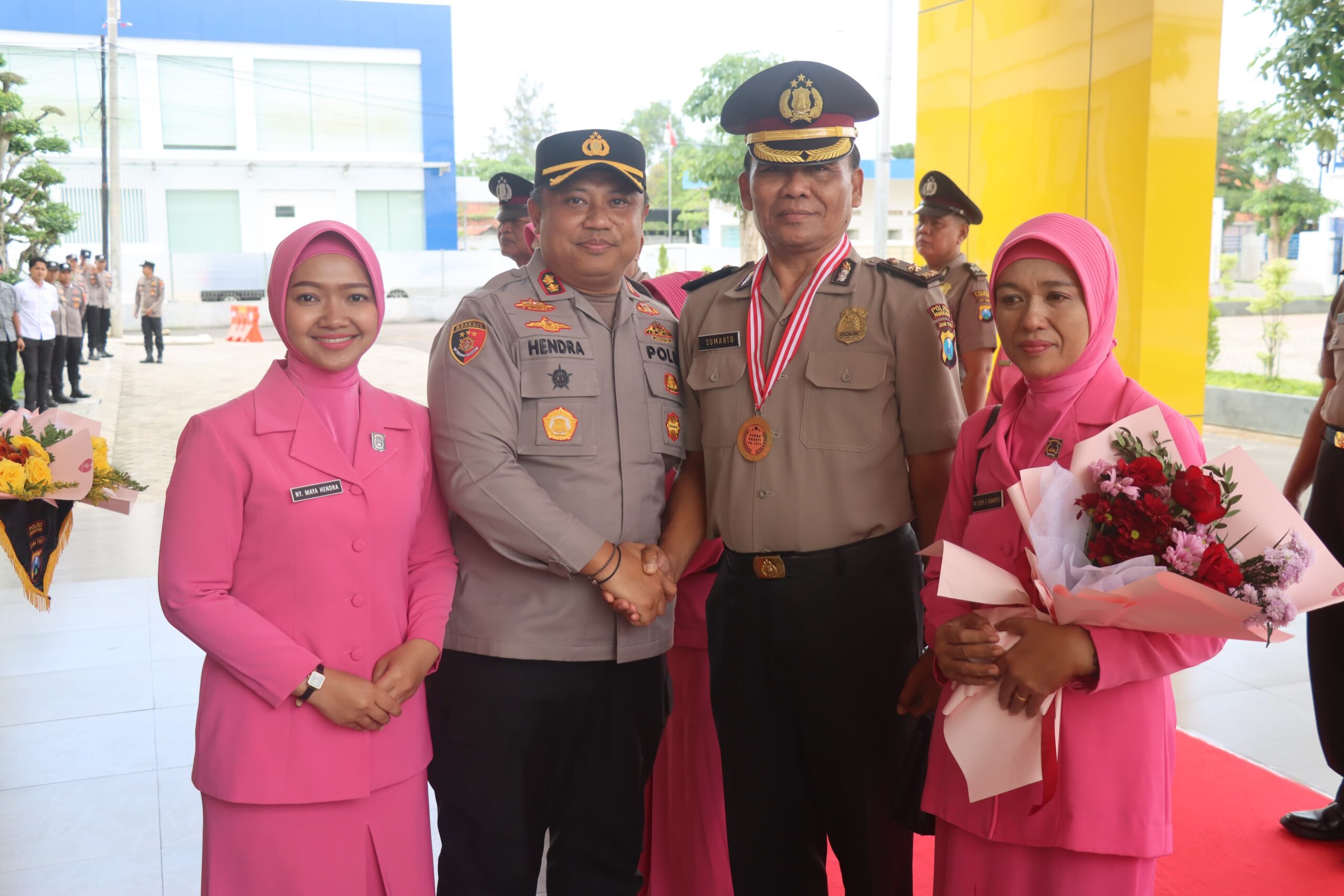 Pelepasan Purna Bakti 17 personel Polres Pamekasan, dipimpin oleh AKBP Hendra Eko Triyulianto didampingi Ibu Ketua Bhayangkari Cabang Pamekasan Ny. Maya Hendra, Rabu (3/12/2025).